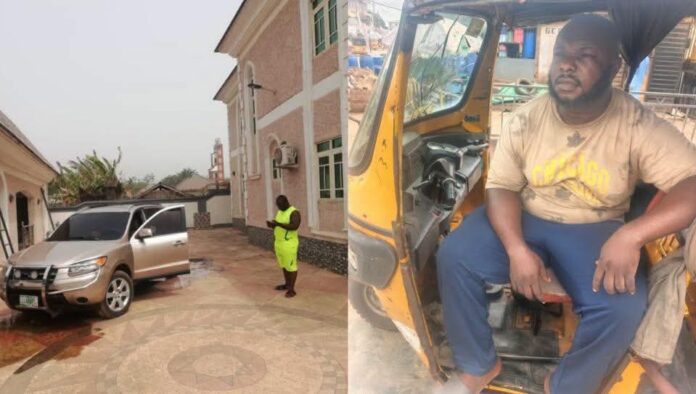 Instead of staying without anything, he decided to borrow little money and get second hand Keke which he is managing now but has been in a bad shape since last week