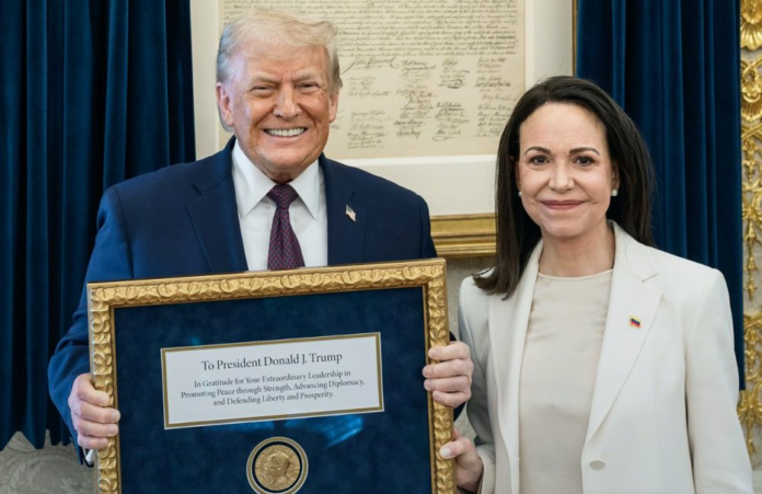 Trump thanked Machado on Truth Social: ‘It was my Great Honor to meet María Corina Machado, of Venezuela, today. She is a wonderful woman who has been through so much. María presented me with her Nobel Peace Prize for the work I have done. Such a wonderful gesture of mutual respect. Thank you María!’