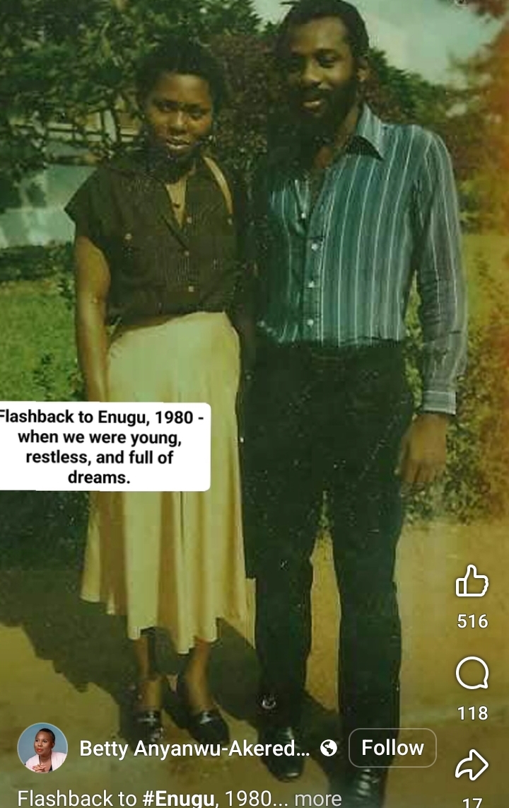 Ondo Ex-First Lady Betty Akeredolu Shares Flashback 1980 Photo Of Their Early Beginnings